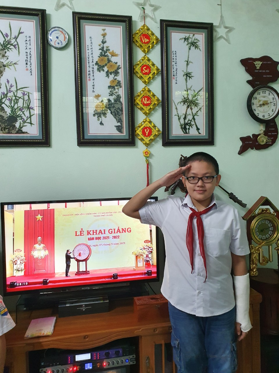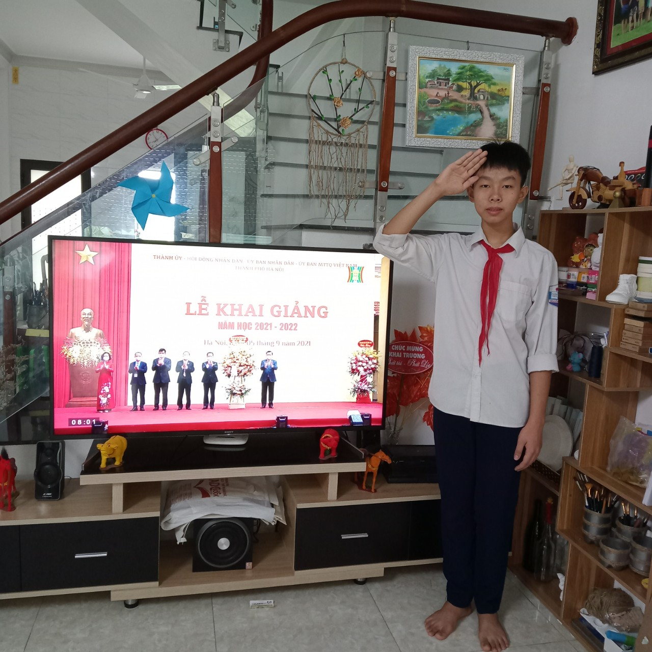 Học sinh lớp 6a3 thực hiện khai giảng nghiêm túc tại nhà